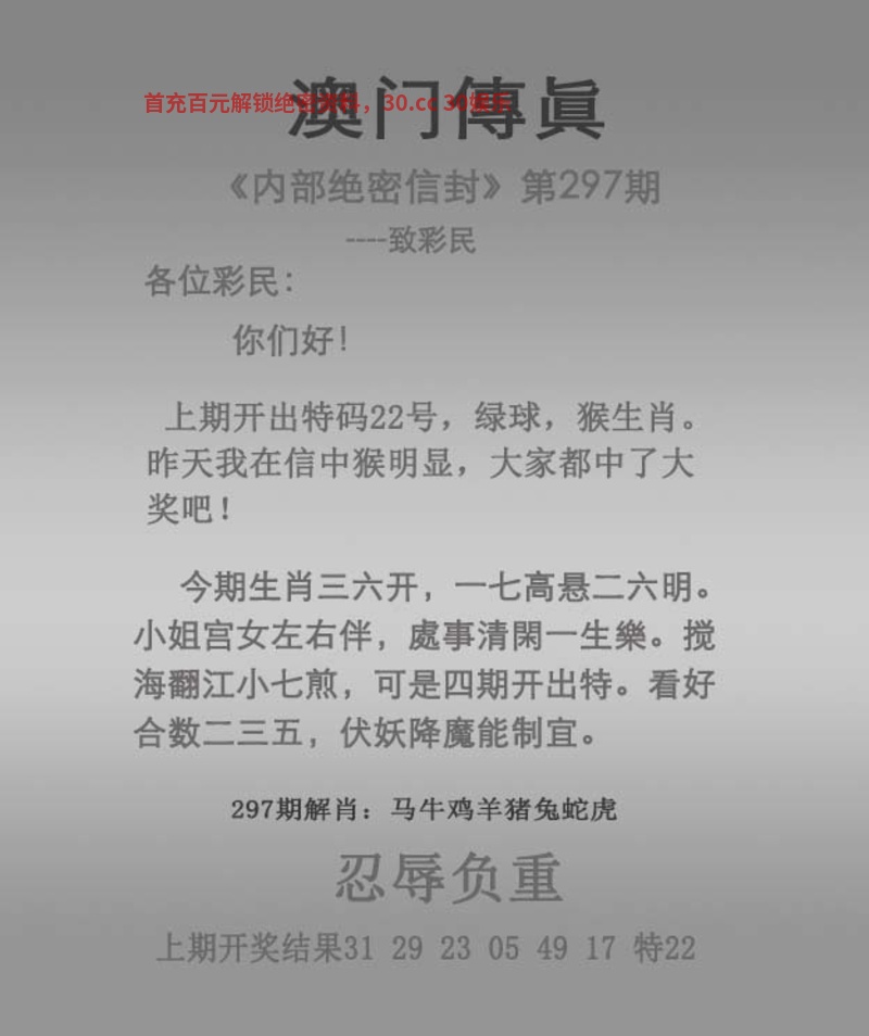| 296期:精准五尾【23578】开猴22中 |